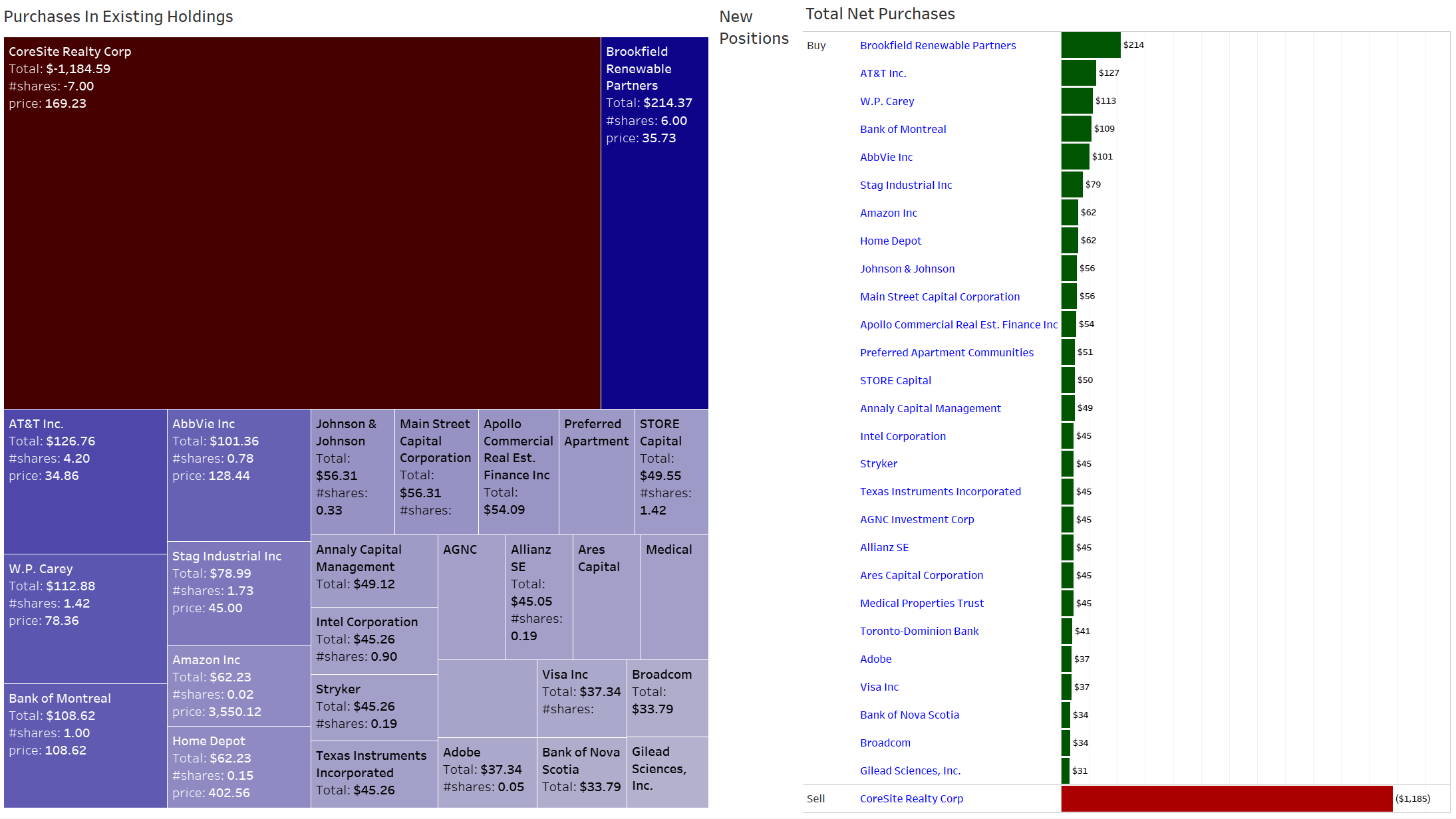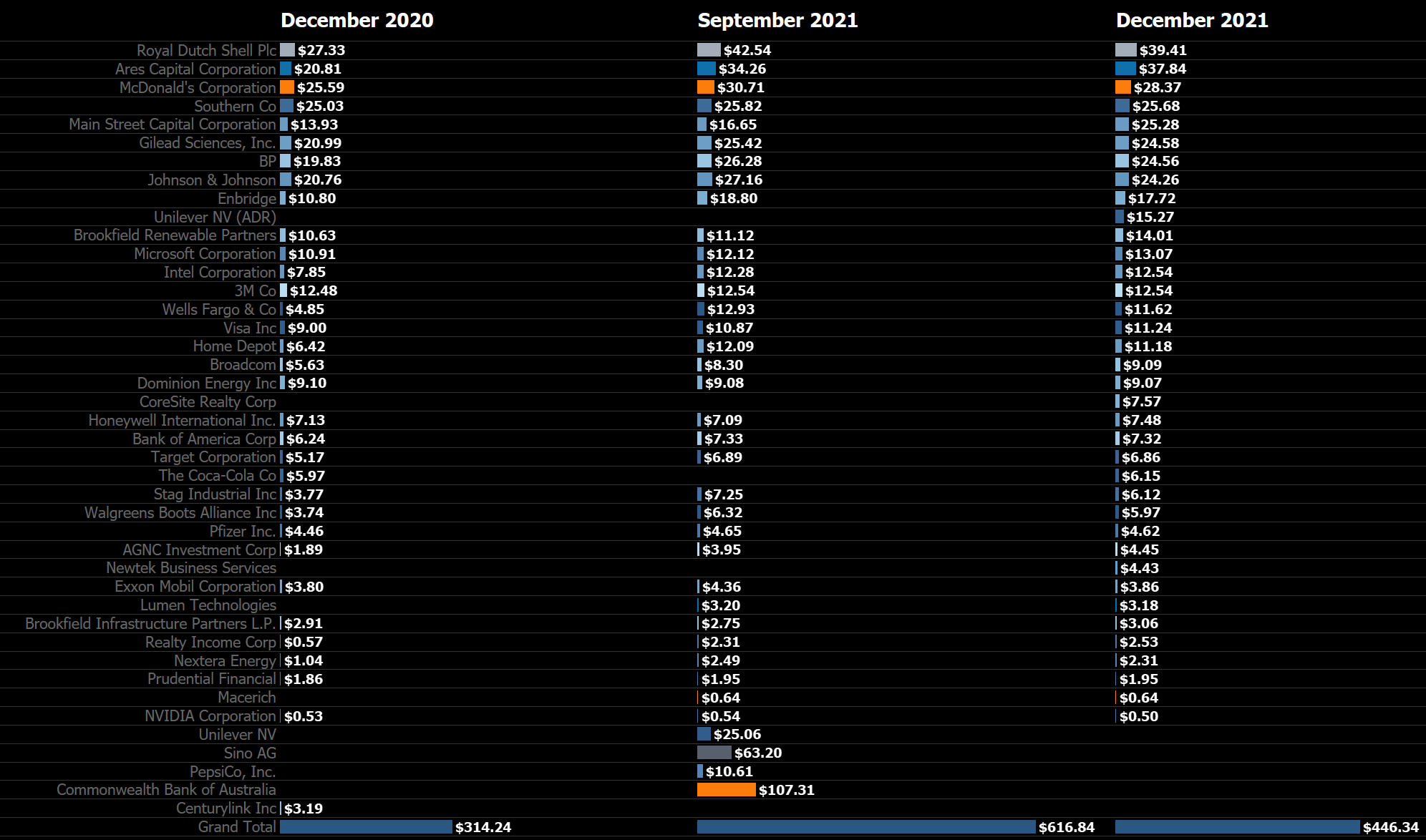 All those purchases substantially raised forward annual dividend income, breaking down as follows: