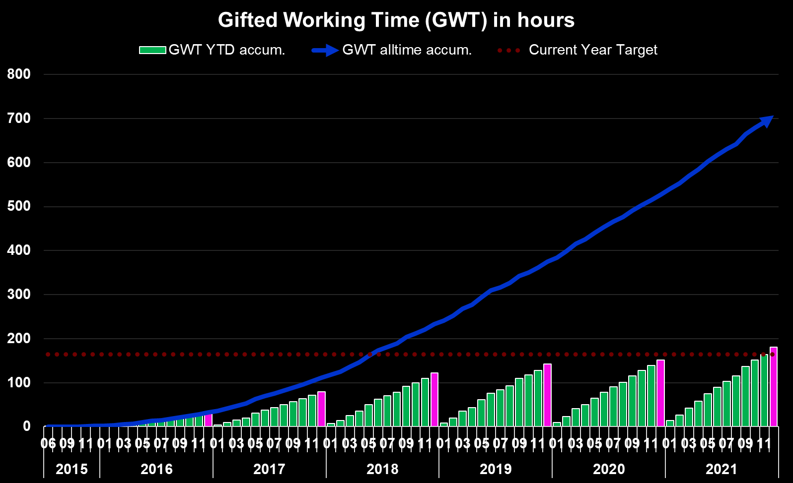 Another way to express the monthly dividend income is in terms of Gifted Working Time (GWT).